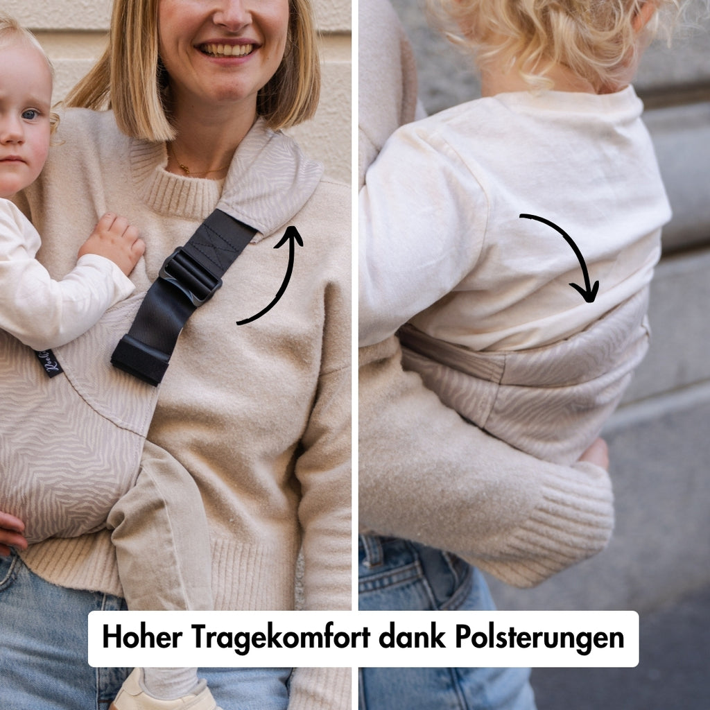 Wenn Kinder größer werden, verändert sich der Alltag: Sie wollen laufen, die Welt erkunden – und im nächsten Moment doch wieder hoch auf den Arm. Dieses ständige Hin und Her kennen fast alle Eltern. Doch dauerhaftes Tragen auf dem Arm belastet Rücken und Schultern enorm.