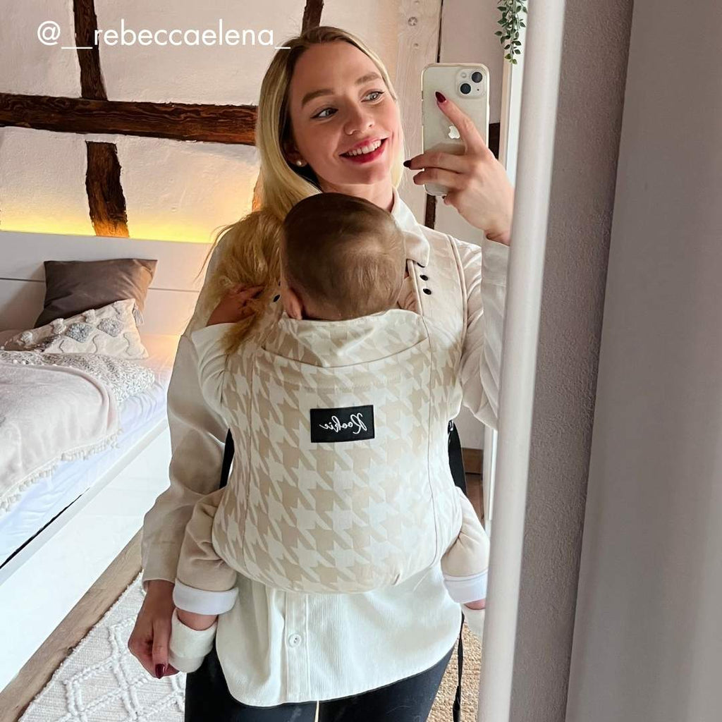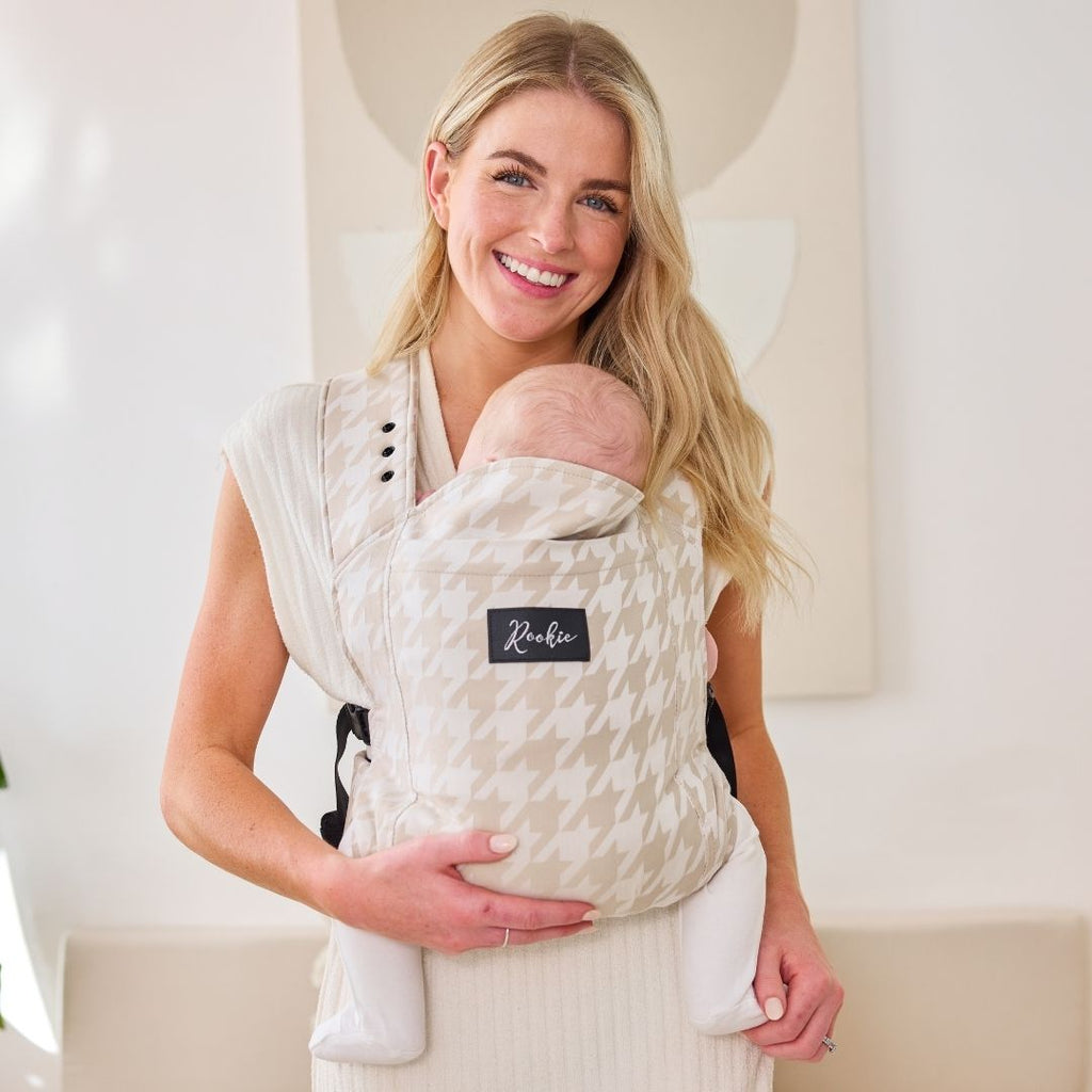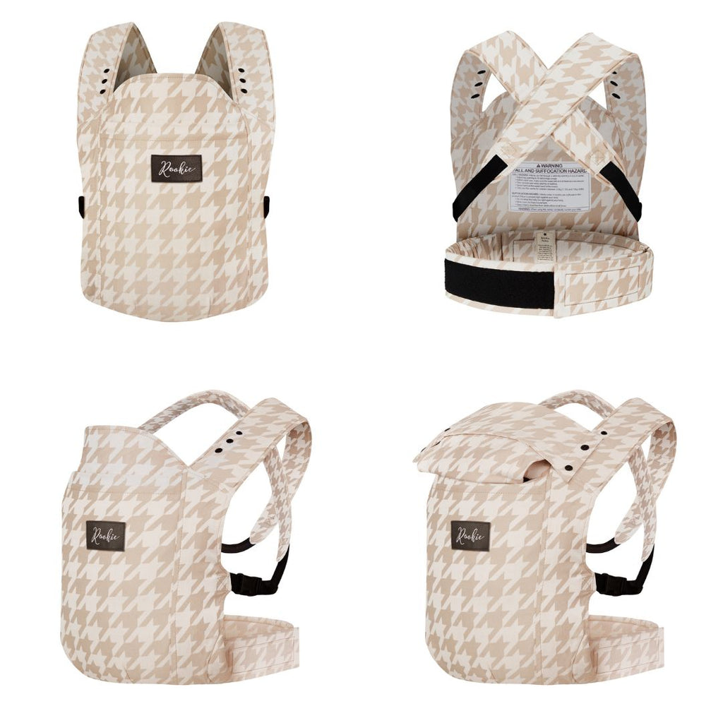 Du erhältst die klassische Rookie Premium Babytrage, die viele praktische Features mit einem minimalistischen Design in einer Bauchtrage kombiniert:
