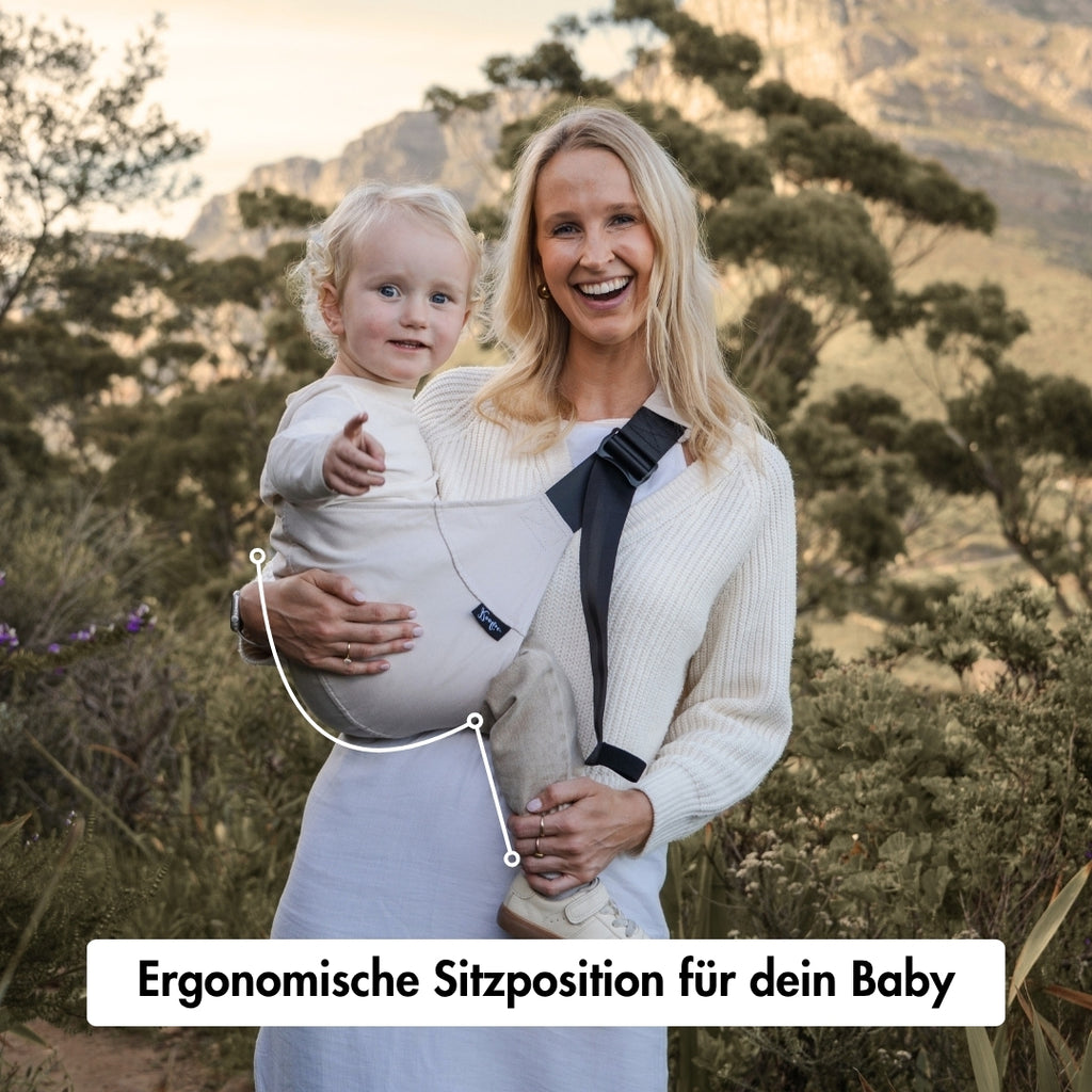 • Merkmale: Fullbuckle Hüfttrage, gepolsterte Schulterpolsterung, Bein- & Rückenpolsterung für dein Kind